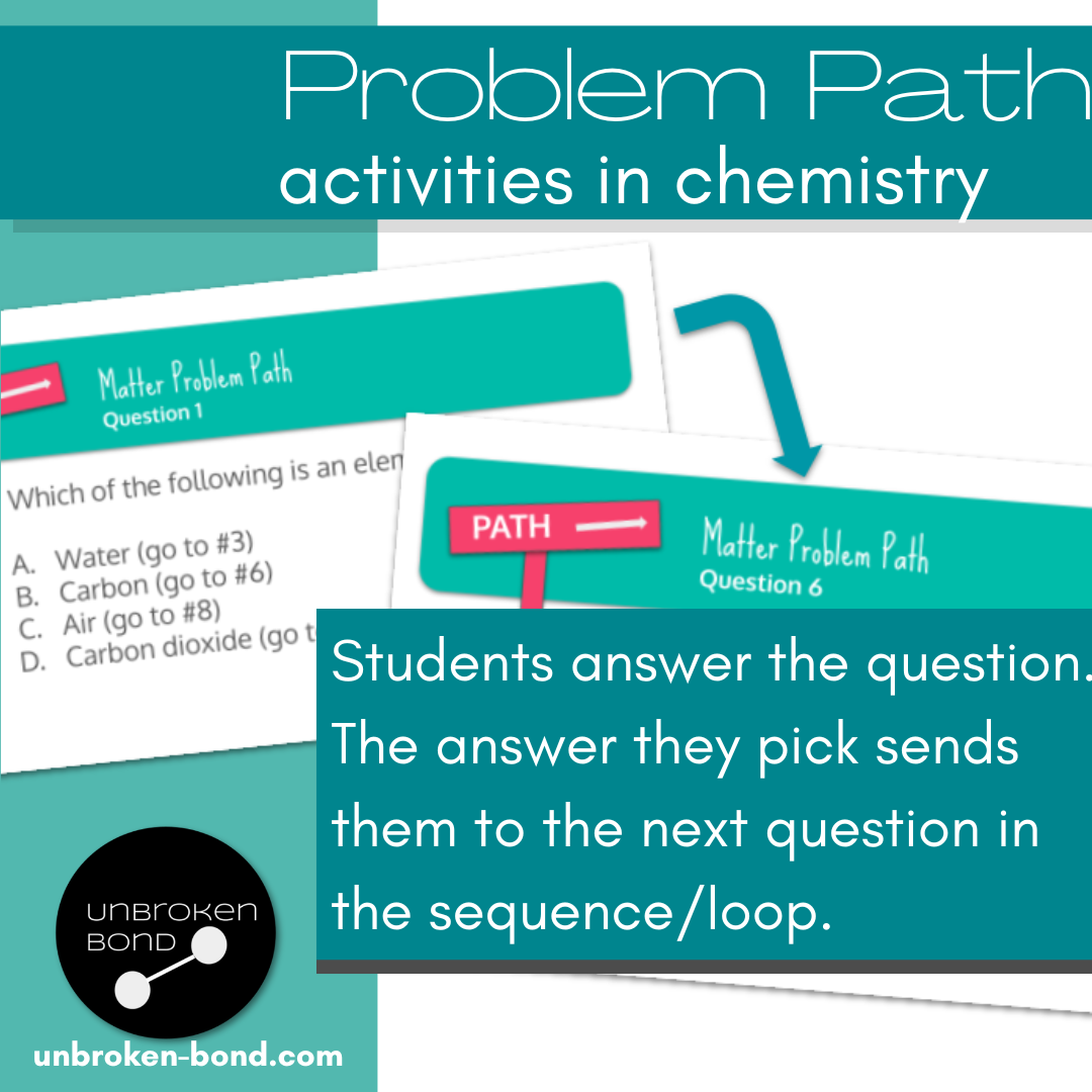 I always aim to give immediate feedback whenever possible in my chemistry class while keeping engagement high. And I always try to minimize my grading. If this sounds like you, or how you want to be in the future, you should add problem paths (also known as question trails) to your list of classroom activities.
